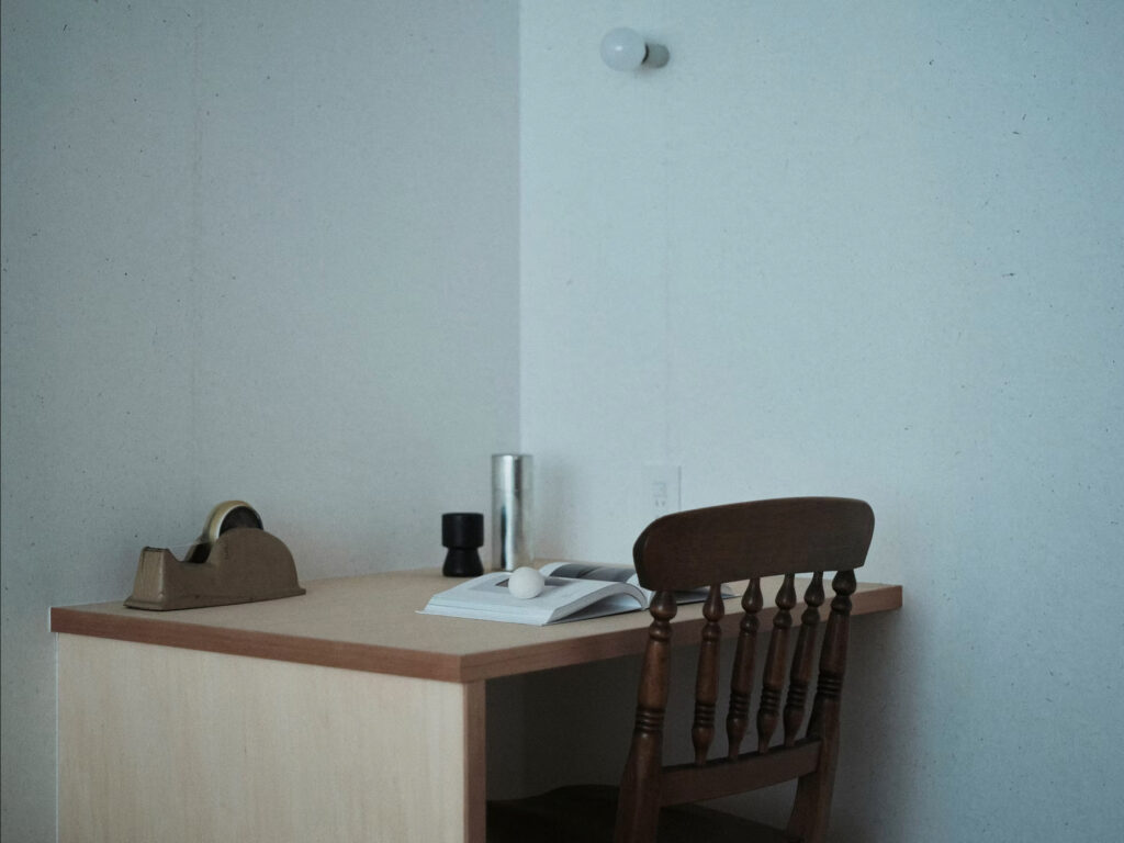 全てソファにするのでなく、一画に小さなデスクを。書き物やPC作業に便利なコーナーです。