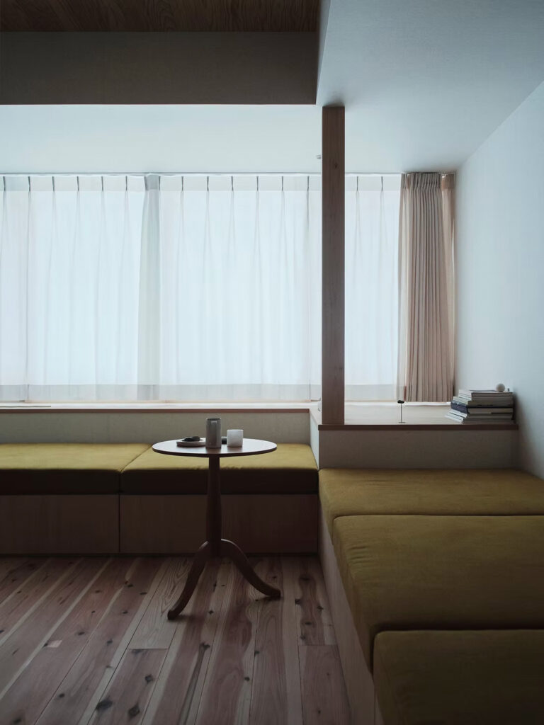 かつて仕切りが多く閉塞感のあった間取りを一新し、広々としたリビングを中心に据えた住まいです。スギの床や羽目板、土佐和紙の壁紙など、自然素材を随所に採用。柔らかな光が室内を満たし、家族の人数に合わせて居室数を抑えることで、集う場所にゆとりを生み出しました。明るさと落ち着きを両立した設計が特徴です。