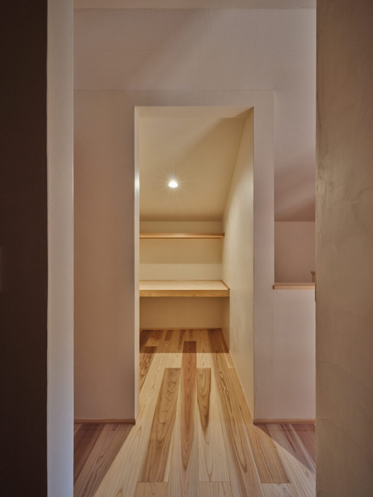 Tさんご家族は、健康と素材へのこだわりから「品川サロン」と出会い、理想の住まいづくりをスタートしました。内装はもちろんのこと、壁の中の断熱材まで自然素材で仕上げた「品川サロン」らしい家づくりで、冬の寒さや化学物質の心配から解放される住環境を実現しています。家族が自然と顔を合わせる距離感を大切にした設計です。