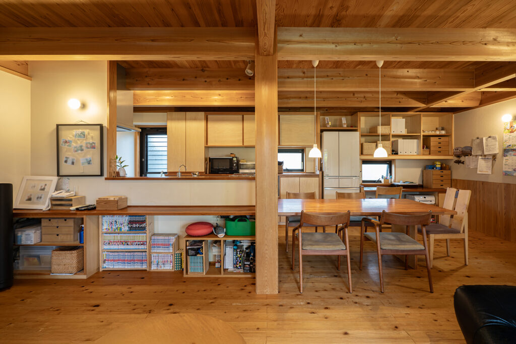 Mさんの一番の希望は、家族全員がゆったりと過ごせる広々としたリビングダイニングした。その中心に大きなテーブルが据えられ、当初は料理をしながら子どもたちの宿題を見守っていました。実は、子どもたちが成長した今も、このテーブルを囲むことが家族全員の日常であり、結束力を高める役割も担っているとのことです。