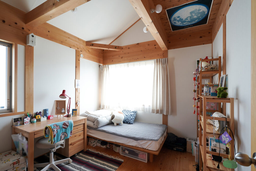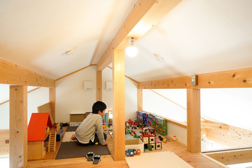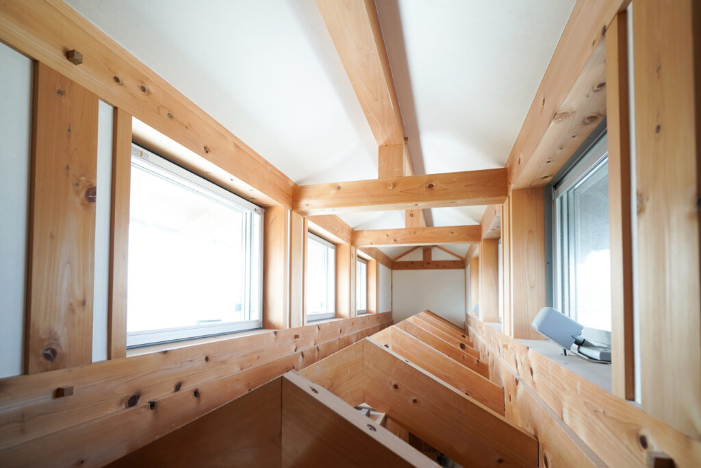 越屋根にあるロフトには、はしごがかかっています。大人でもワクワクするこのスペースは、お子さまの秘密基地です。ご主人が毎朝ここに上って越屋根の小窓を開けると、風が家中を流れるそうです。