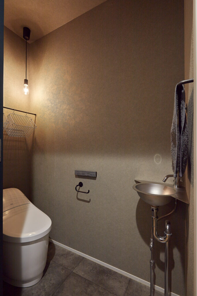 モダン 自然素材 造作家具 無垢材 ガルバリウム鋼板 塗り壁 高気密・高断熱 家事が楽 ランドリールーム 子育て世代 共働き 3LDK