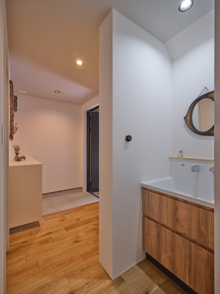 ダイニング横に設けたペットスペースや、家事ラク動線など、日々の暮らしやすさを追求しました。将来のライフスタイルの変化にも柔軟に対応できる設計で、長く愛着を持って住み継げる住まいです。