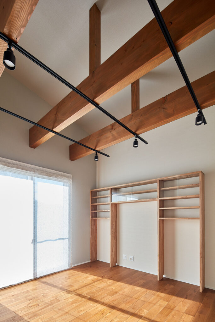 1階に設けた趣味専用室は、音楽愛好家のご主人のための特別な空間です。造作の棚には楽器や音響機器を美しく配置でき、創作活動に集中できる環境を実現。収納計画も綿密に練られ、道具類を整然と管理できる機能的な設計となっており、創造性を最大限に引き出す工夫も随所に。芸術的な時間を約束してくれる充実した設備が整っています。