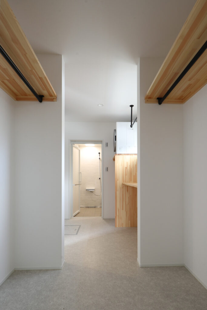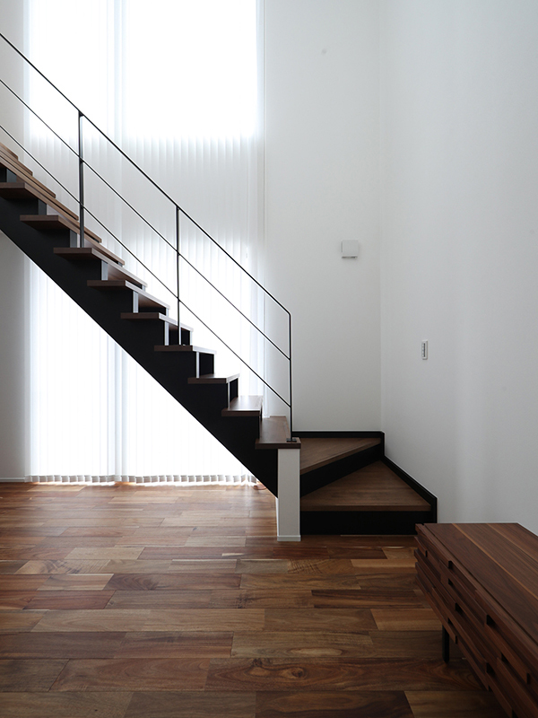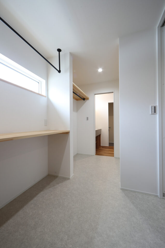 間取りは家族構成やライフスタイルの変化に柔軟に対応できる可変性を持たせています。2階の踊り場には多目的に使える造作デスクを設置し、ワークスペースや趣味の場として活用可能。玄関からリビングへ続くタイルデッキは多用途に使え、日々の暮らしに新たな楽しみをもたらします。必要なものだけを厳選した「ちょうどいい家」が、長く快適な毎日を支えます。