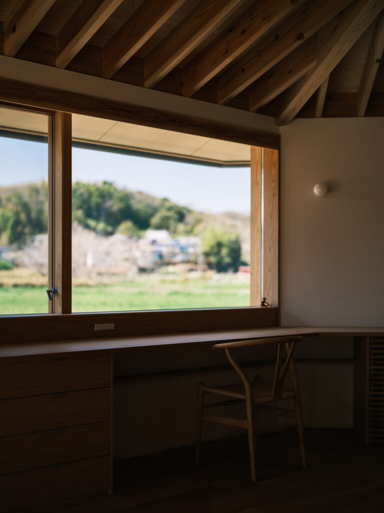西の窓辺にオーク材でデスクを造作し、将来も変わらぬ贅沢な景色を楽しめます。
