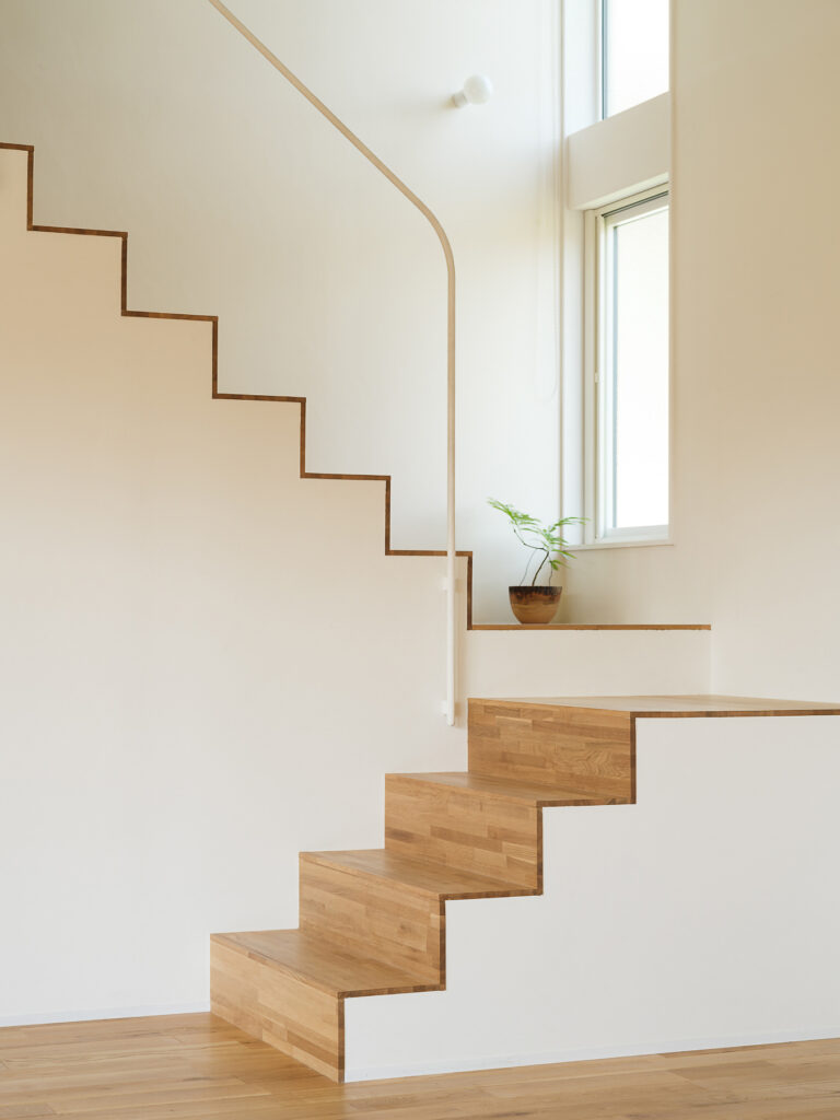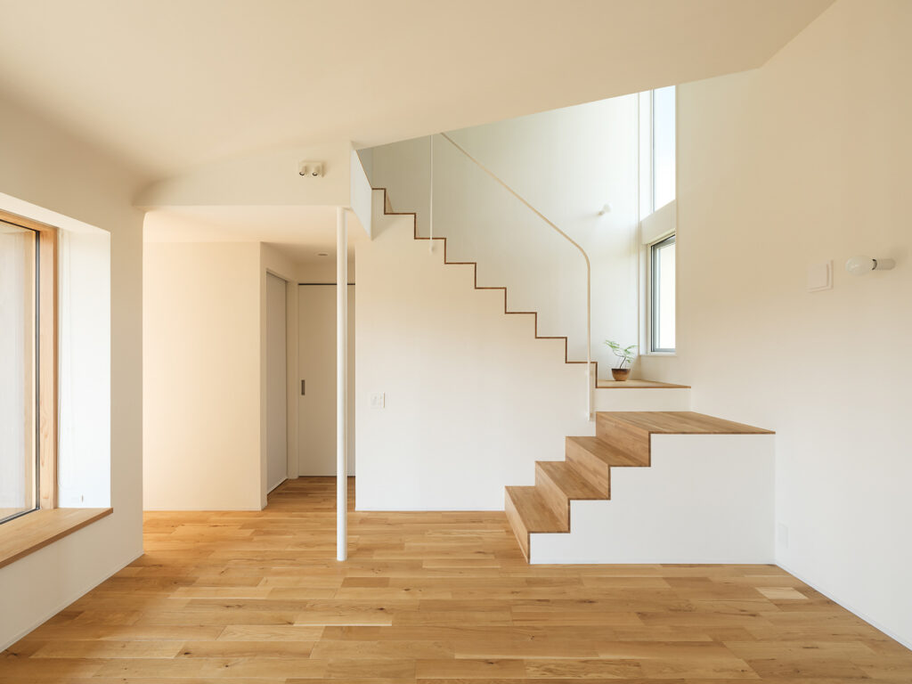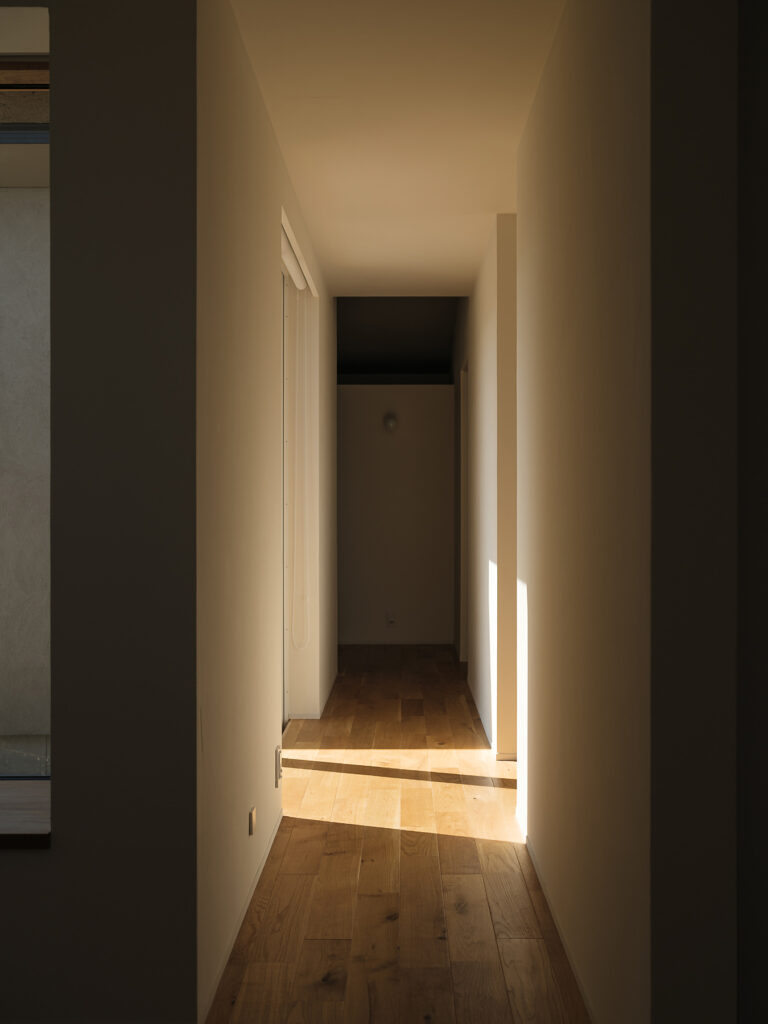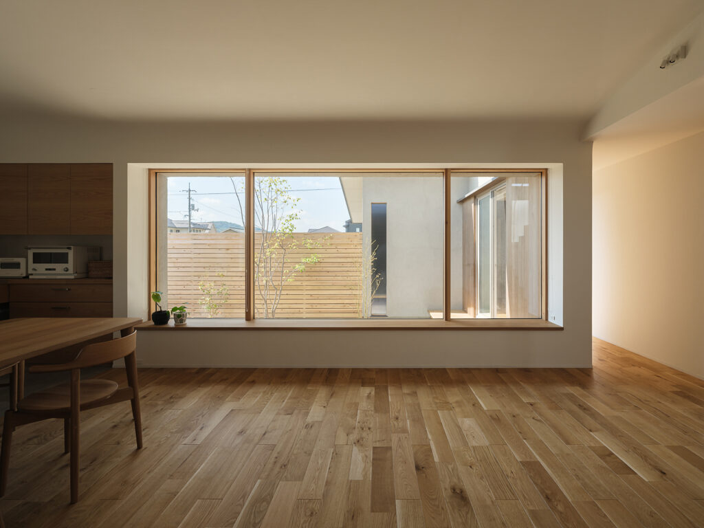 造成されたばかりの新しい街並みにあって、この住まいは独自の落ち着きをまとっています。中庭を中心とした配置により、どの部屋にも均質な自然光が届き、風の通り道も確保されました。家族それぞれが好きな場所で過ごせる居場所が点在し、時には一緒に、時にはおのおのの時間を楽しめる住まいです。外部に対しては適度に閉じながら、内部では伸びやかに広がる。そんな対比が、日々の生活に心地よいリズムを生み出しています。