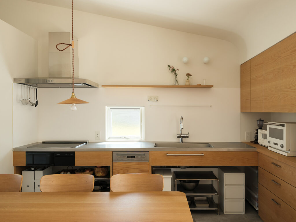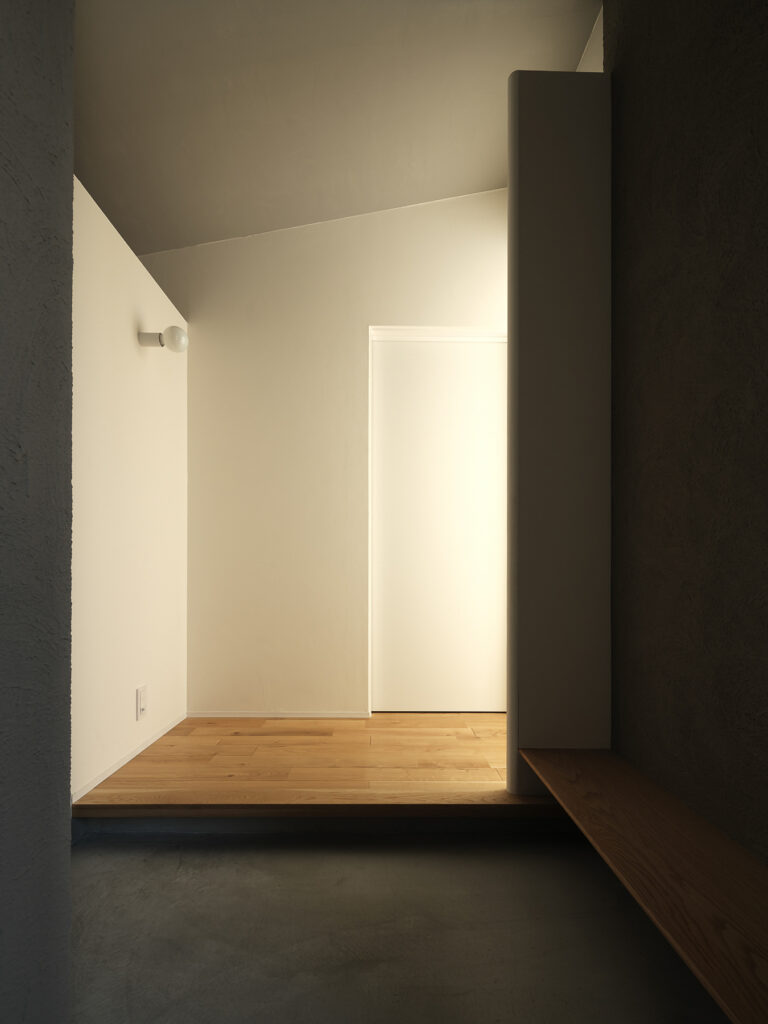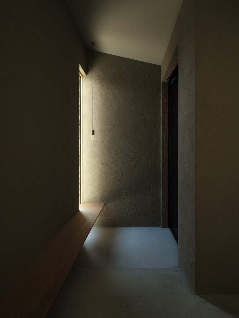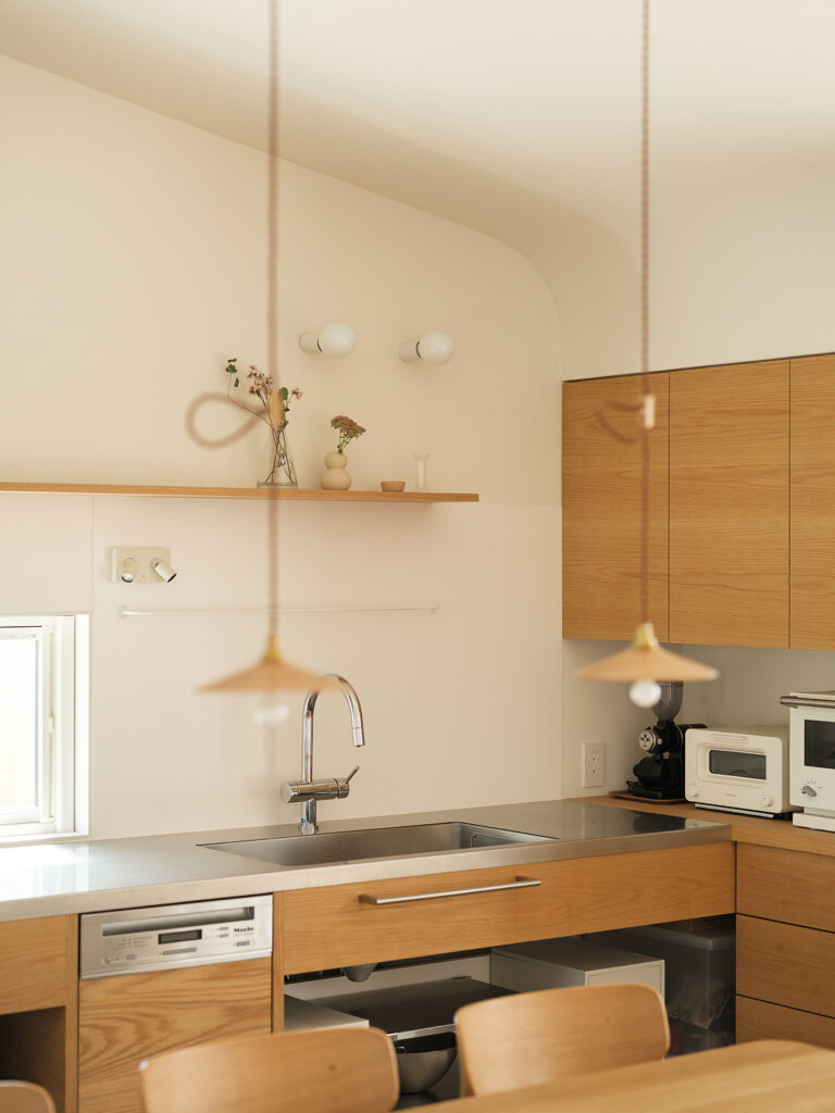 造成されたばかりの新しい街並みにあって、この住まいは独自の落ち着きをまとっています。中庭を中心とした配置により、どの部屋にも均質な自然光が届き、風の通り道も確保されました。家族それぞれが好きな場所で過ごせる居場所が点在し、時には一緒に、時にはおのおのの時間を楽しめる住まいです。外部に対しては適度に閉じながら、内部では伸びやかに広がる。そんな対比が、日々の生活に心地よいリズムを生み出しています。