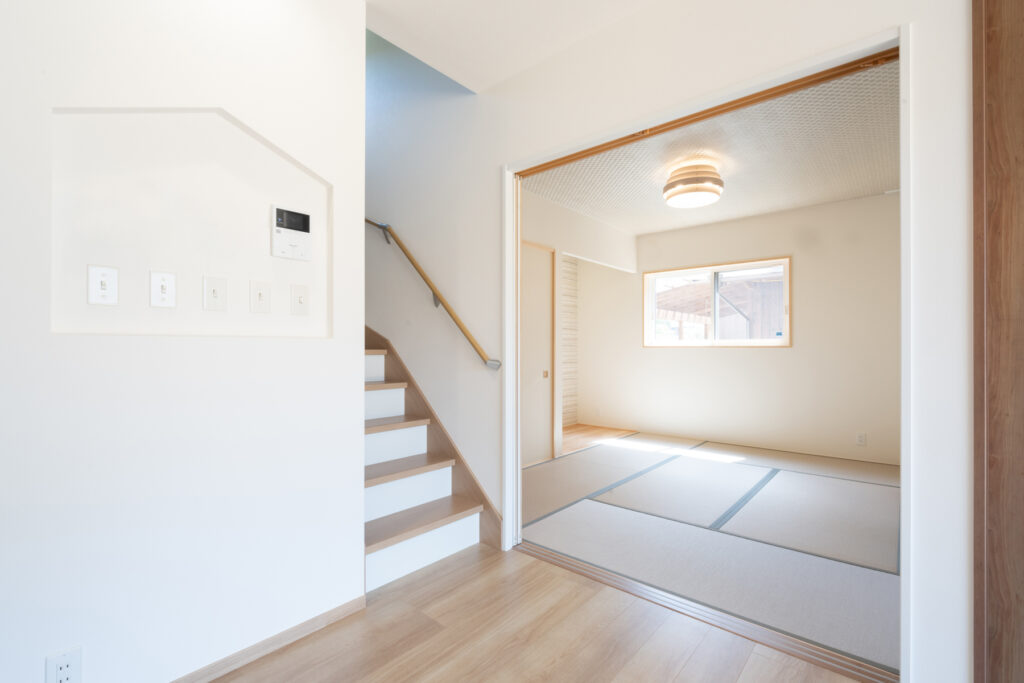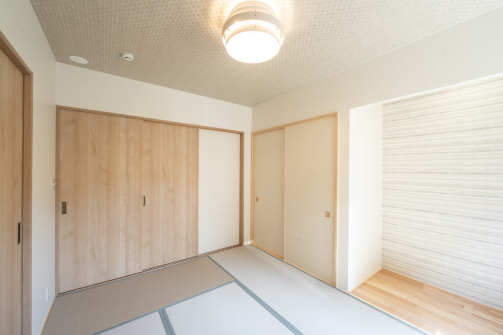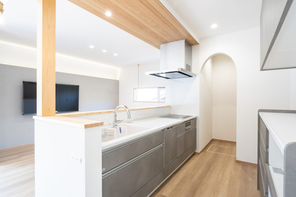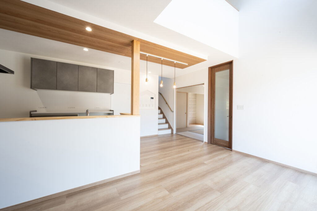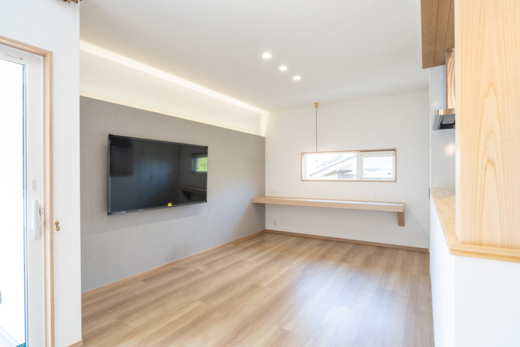 リビング横に設けた固定カウンターは、奥さまの趣味の時間にも、お子さまとの工作や読書にも自然と使われています。キッチン奥のパントリーへと続く空間は、料理をする時間そのものを豊かにします。ナチュラルモダンな和室は、お子さまのお昼寝からゲストのおもてなしまで、場面に応じてさまざまな顔を見せます。