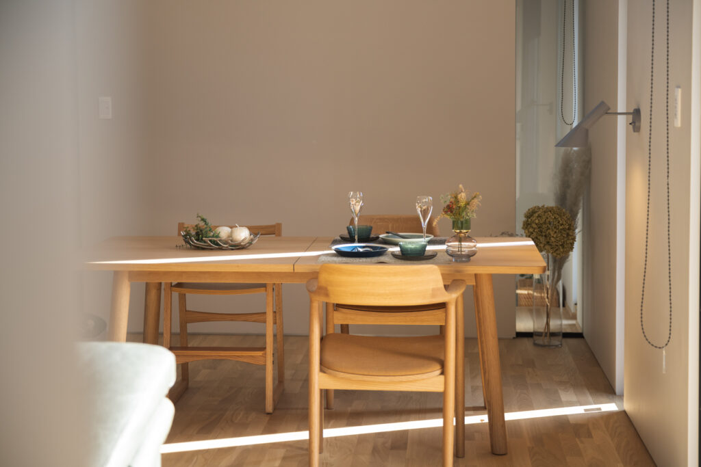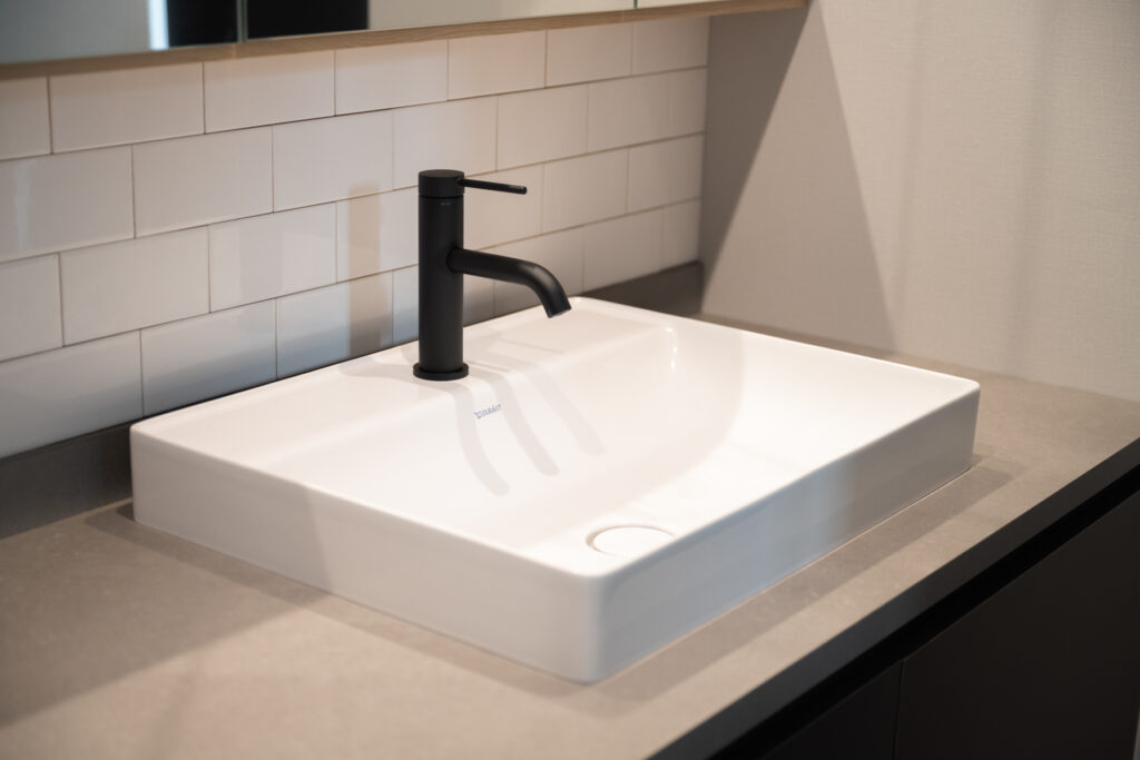 ドイツの名門ブランドが主役を務めるキッチンは、料理をする時間そのものを特別なものに変えます。一方、グレーで統一された洗面エリアは、朝の身支度を静かに整えてくれる場所。暮らしの細部にまで宿ったこだわりが、毎日の時間に小さな豊かさを積み重ねていきます。